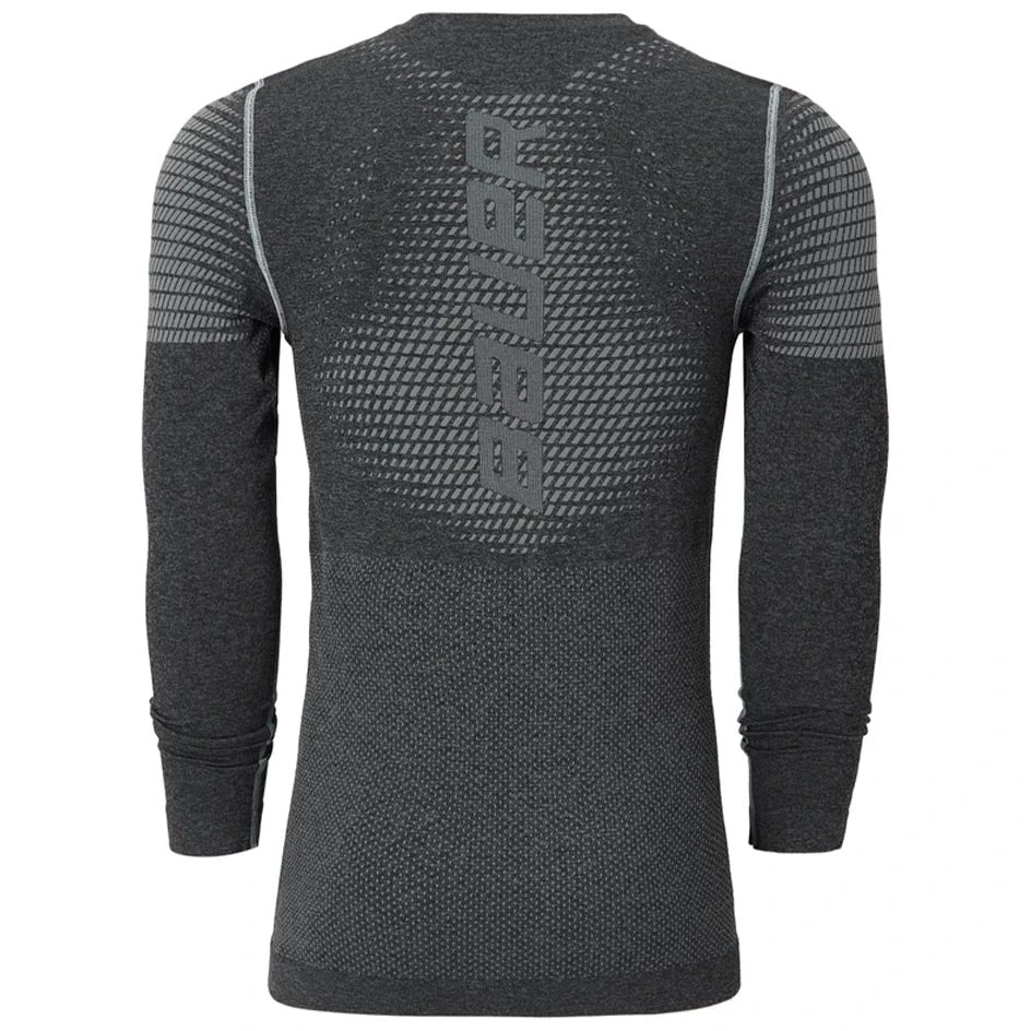 A seamless construction allows for strategic stitching zones directly into the garment. Reinforced stitching in the abdomen and forearms provides added warmth for these cooler areas as well as better durability.