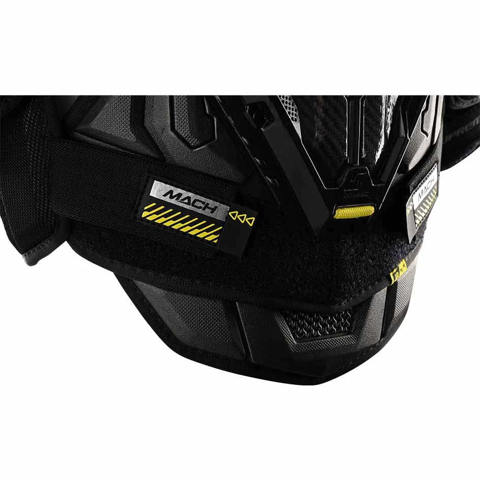 Protect your upper body like never before. The SUPREME MACH shoulder pads deliver full protective coverage with more flex points for added mobility so you can stay safe on the ice while performing at your best.