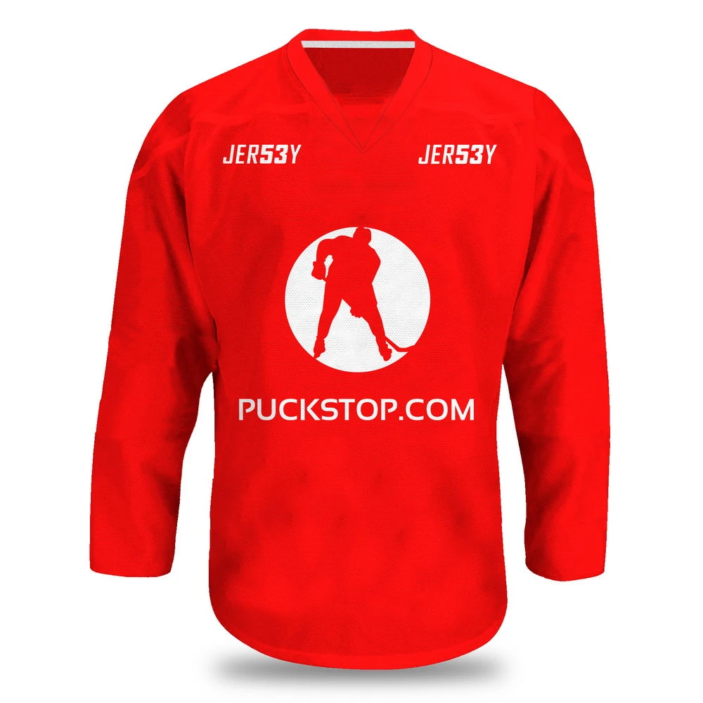 The Puck Stop Logo Jersey is a solid, classic practice jersey that offers ventilation and duribility.Â