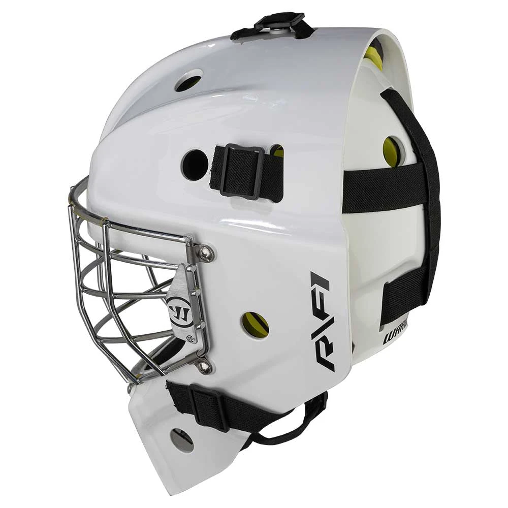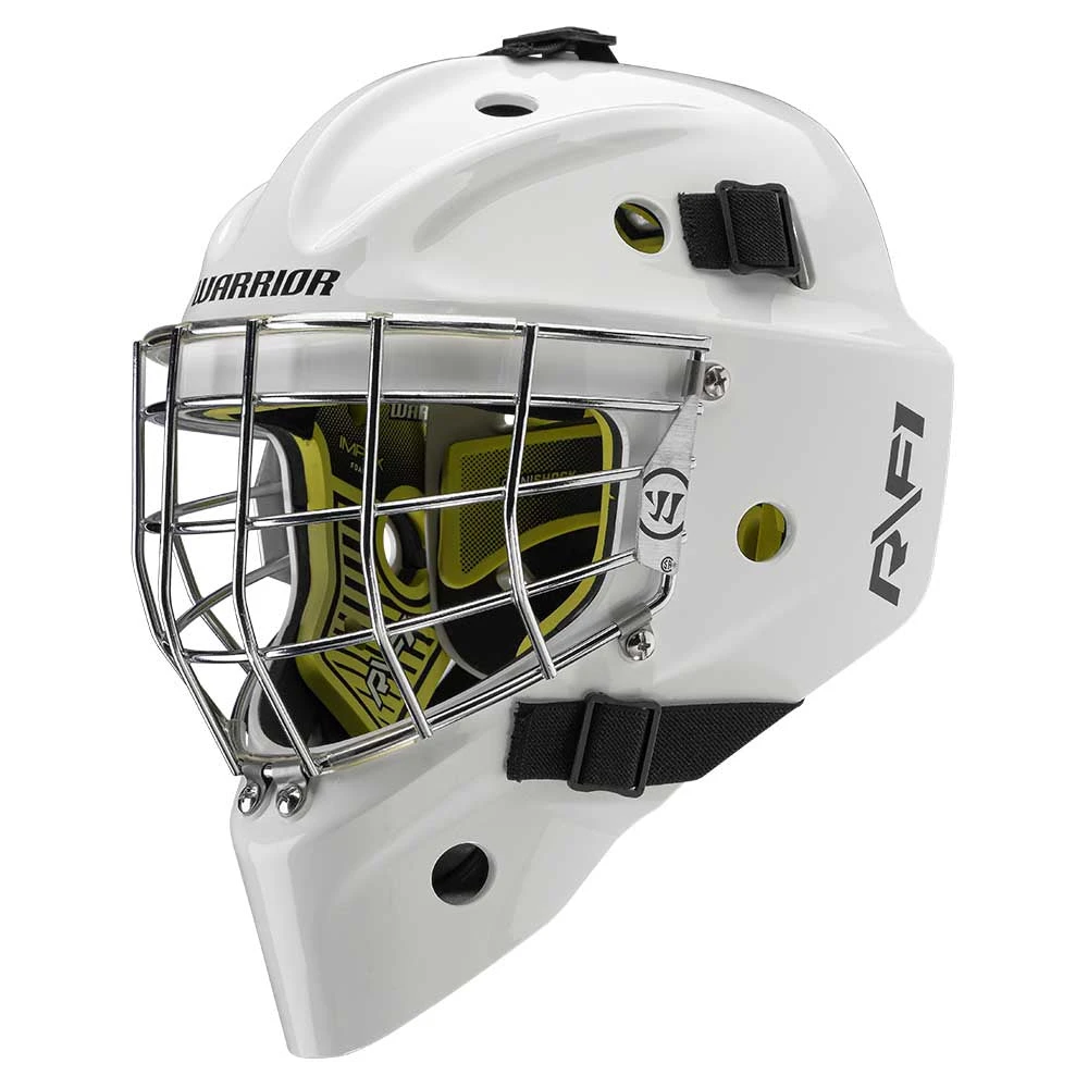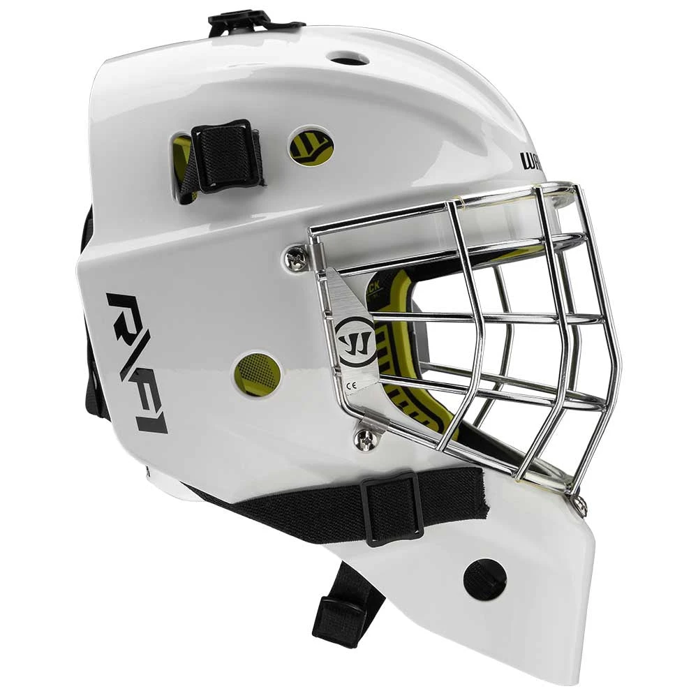 Starting with the overall look, Warrior has dialed in the shape of the R/F1 to not only look amazing, but also optimizes chin mobility for the goaltender to have the best vision on the ice possible.